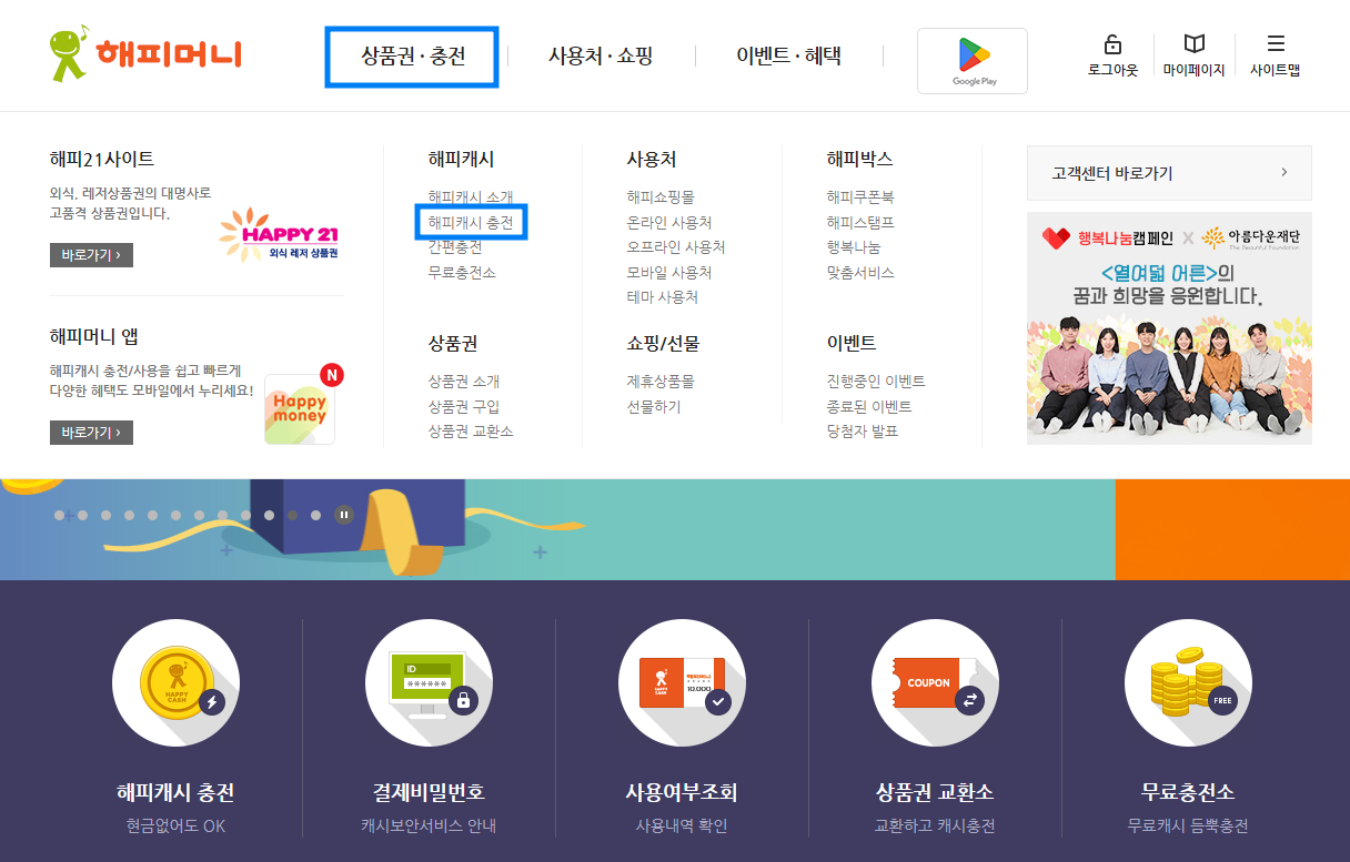 해피머니 충전하기