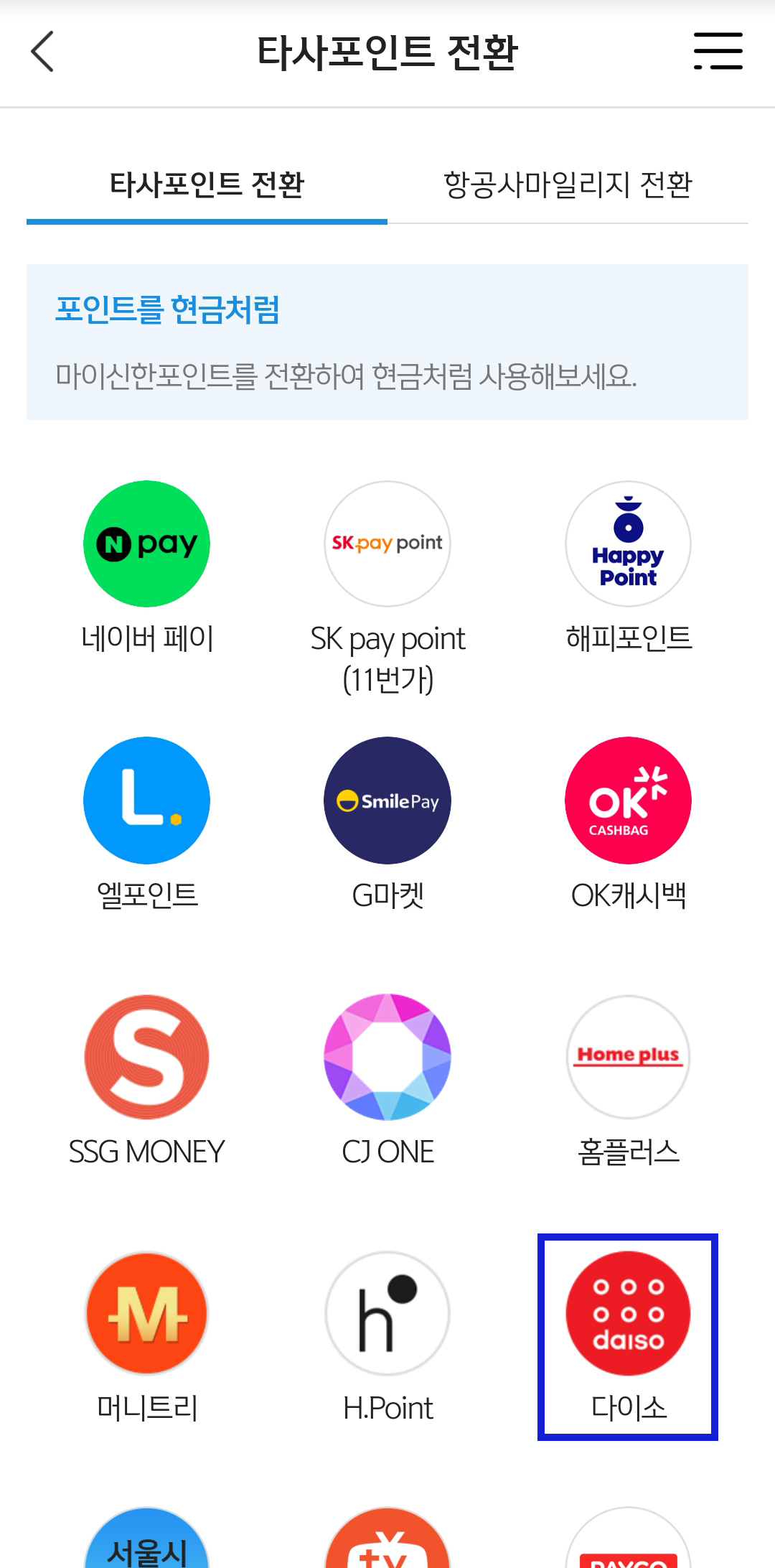 신한플레이에서 다이소 포인트 전환하기