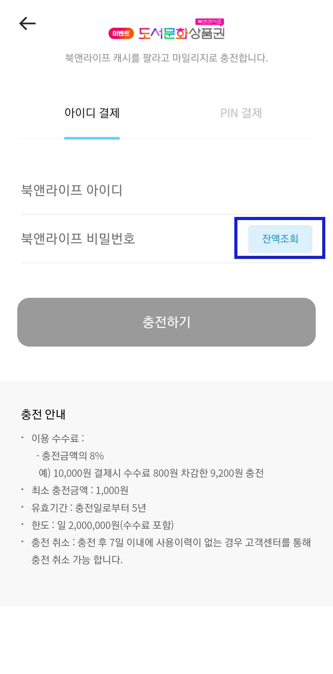 북앤라이프 충전하기