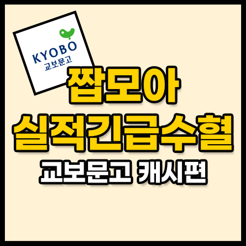 월말이 되면 항상 놓쳤던 짭모아 횟수 때문에 신한카카오카드의 횟수를 어떻게 채워야 되나 고민이 많으실 겁니다. 지난번에 알려드렸던 H.point 긴급 수혈 방법에 이어 다른 긴급 수열방법을 알려드리려고 합니다. 말 그대로 긴급수혈이기 때문에 매일매일 하시는 것보다는 횟수가 부족할 때 사용하시면 좋습니다. 오늘은 교보캐시를 충전하여 횟수를 채워보려고 합니다.
